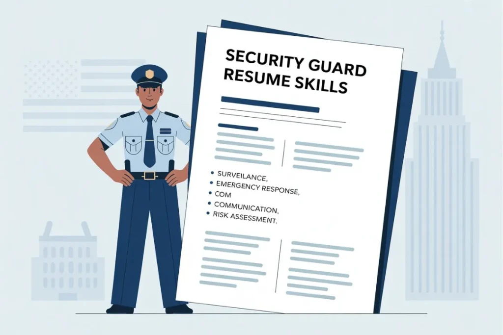 Security guard resume skills are the skills and abilities that a security guard displays on his or her resume to convince the employer that he or she is effective in identifying hazards, reporting incidents, and working as a team. These skills are extremely important for security jobs in the USA because in today’s world, physical strength alone is not enough. Hard Skills such as understanding Surveillance Equipment, Report Writing, and First Aid, and Soft SkillsSkills such as Communication, Conflict Resolution and Critical Thinking are both required. When these skills are clearly included in a resume, they not only look better in the ATS (Applicant Tracking System) but also immediately highlight your abilities to human employers.